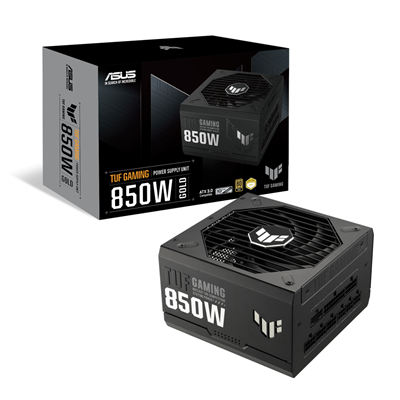 The ASUS TUF Gaming 850W Gold packs military-grade strength, a flagship fan design, and PCB protection for efficient, durable power delivery., 80 PLUS Gold Certified, Dual Ball Fan Bearings, Protective PCB Coating