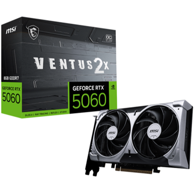 MSI GeForce RTX 5060 8G Ventus 2X OC Graphics Card, 8GB GDDR7, PCIe 5.0, Dual Fan Thermal Design, HDMI 2.1b, DisplayPort 2.1b
