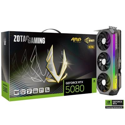 The ZOTAC GAMING GeForce RTX™ 5080 AMP Extreme INFINITY ULTRA offers a completely revamped gaming experience with a whole new approach to Graphics Card design, featuring NVIDIA’s cutting-edge Blackwell architecture and features such as DLSS 4., NVIDIA Blackwell Architecture, IceStorm 3.0 Advanced Cooling, Larger Vapor Chamber Design